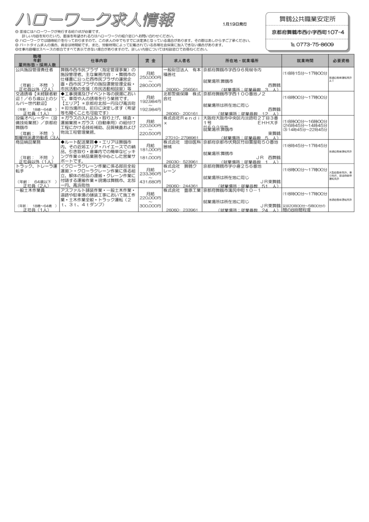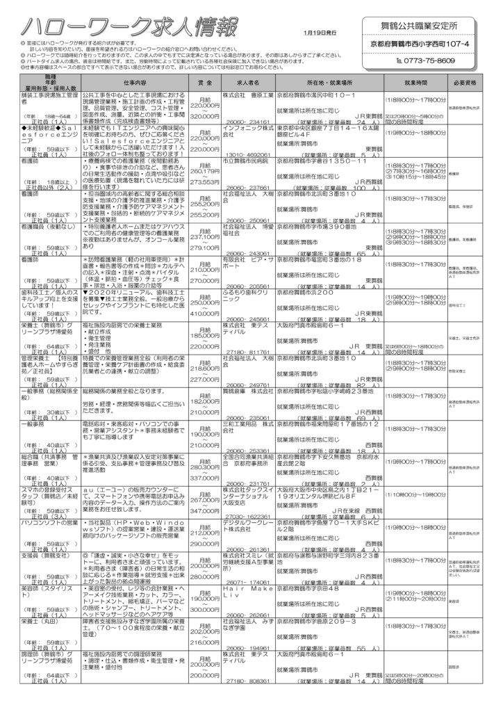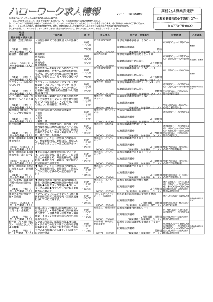 【1/19】まいづる求人情報(週刊)